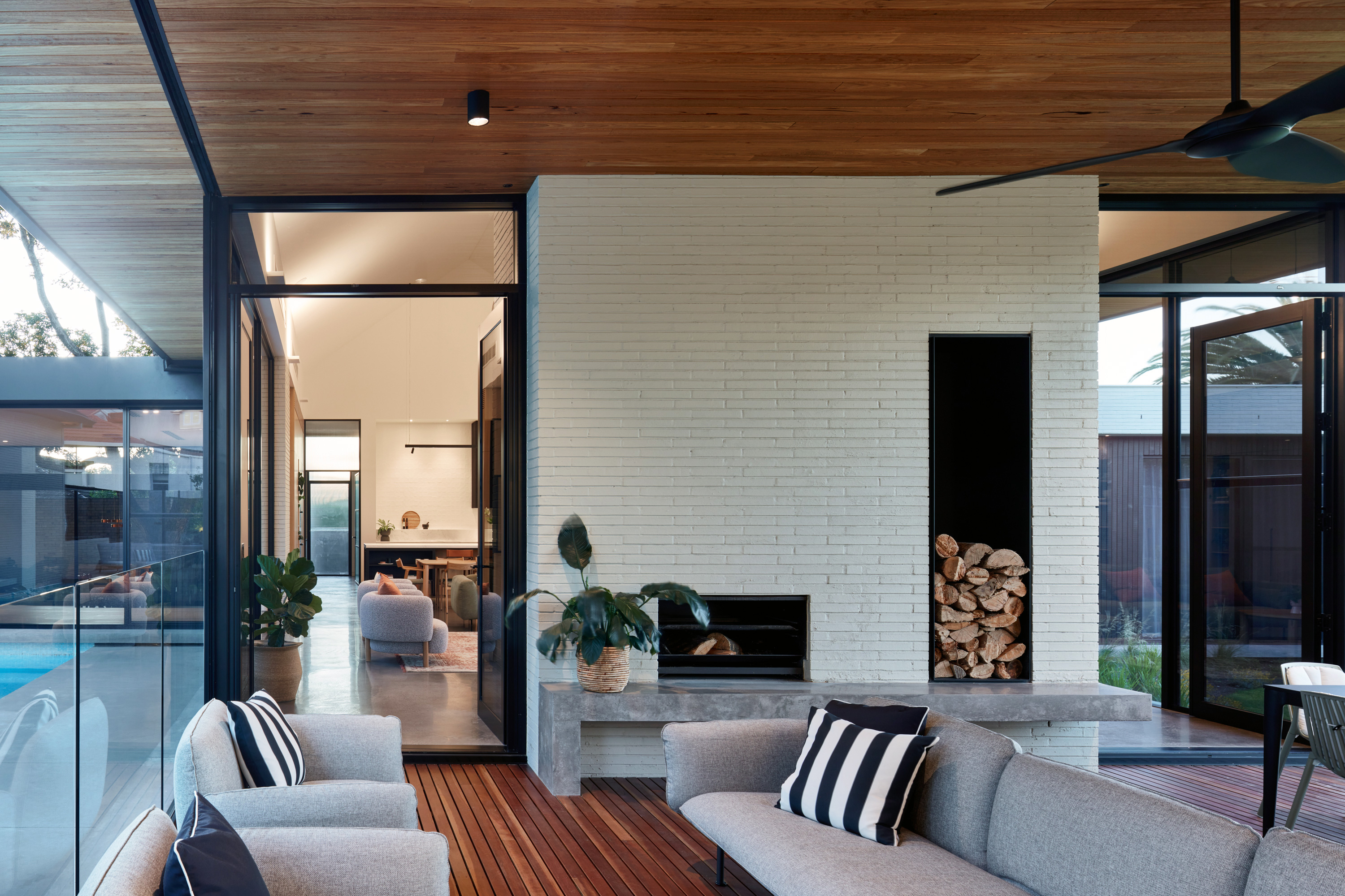 Twin Peaks flips conventional orientation to create and engaging plan for this new family home. Encircling the pool and ensuring garden vistas from each space, the form follows two gable structures with courtyards to encompass existing trees and moments for quiet repose.